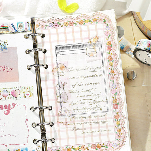 BGM LIFE Gold Foiled Washi Tape - Pink Check Lace